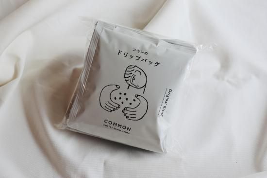 ご自宅、オフィスでのコーヒーブレイクにコモンのドリップバッグはいかがですか?一杯分のコーヒー粉が入ったお手軽、便利なカップオンタイプのコーヒーです。鞄などにもスッと入るので出張や旅行にも大活躍。器具を必要としないので普段コーヒーを淹れない方にもお気軽に楽しんでいただけます。イラストは土屋未久さん。